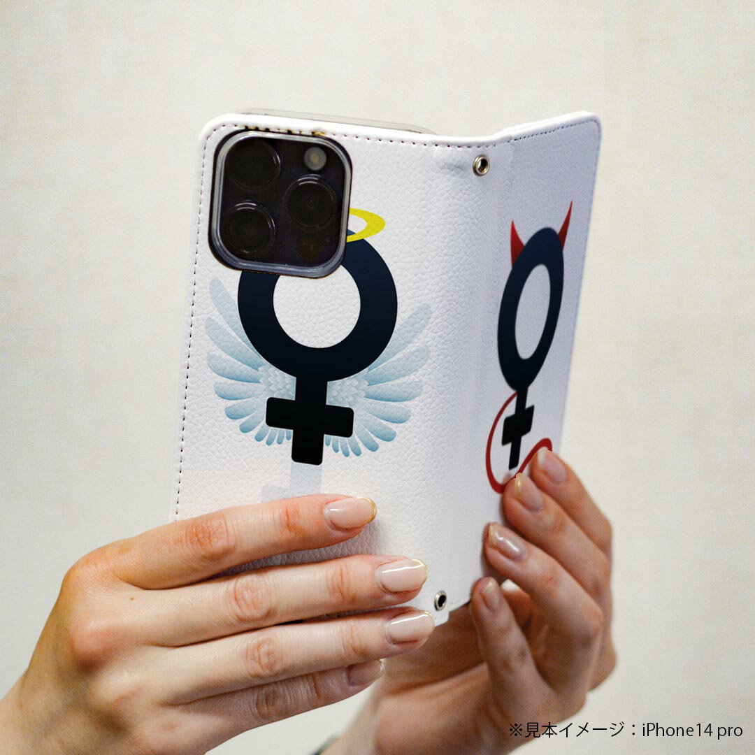 SH-02H AQUOS Compact アクオスフォン sh02h docomo ドコモ 手帳型 スマホ カバー カバー レザー ケース 手帳タイプ フリップ ダイアリー 二つ折り 革 010862 天使 悪魔 シンプル